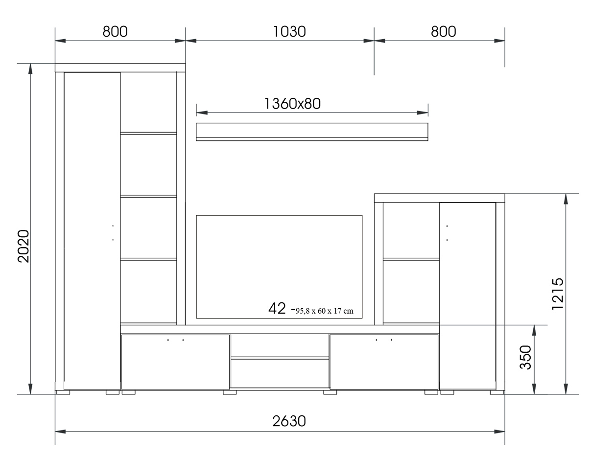 Composición de salón ideal para ambientes de salón modernos, con gran cantidad de almacenaje. Dispone de un bajo con dos puertas y huecos para los periféricos, una vitrina baja con puerta y hueco con estantes, una vitrina alta que igualmente combina puerta y huecos, y una balda simple para pared. Es una composición única por lo que no se pueden comprar los módulos por separado, ni se puede montar de otra manera diferente a la foto. Los herrajes con los que se ensambla son metálicos, y la composición del mueble es melamina de alta calidad con acabados muy aceptables. Tiradores de plástico gris.