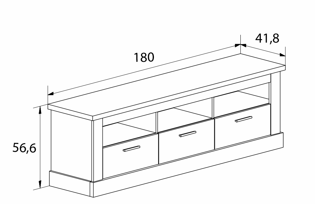 Composición de salón compuesta por un bajo TV de tres cajones y tres huecos, una vitrina alta con luces leds y un respaldo con tres estantes de gran tamaño.