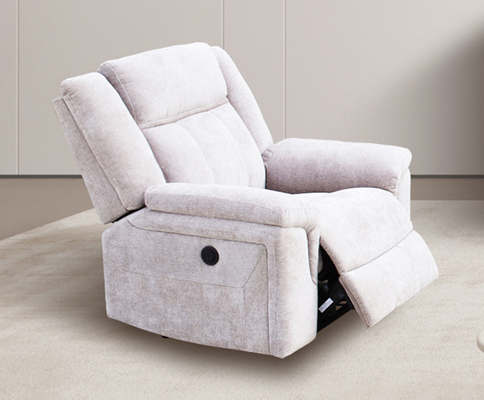 El sillón eléctrico Troya de una plaza ofrece comodidad y resistencia gracias a su sistema motorizado y muelles ensacados. Disponible en beige y gris, se adapta a cualquier salón. En nuestra web también lo encontrarás en modelos de 2 y 3 plazas.