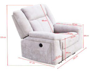 El sillón eléctrico Troya de una plaza ofrece comodidad y resistencia gracias a su sistema motorizado y muelles ensacados. Disponible en beige y gris, se adapta a cualquier salón. En nuestra web también lo encontrarás en modelos de 2 y 3 plazas.