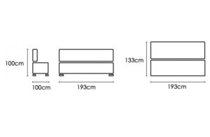 – Colchón densidad 20 kg, 188×126 cm. Funda TNT con cremallera.